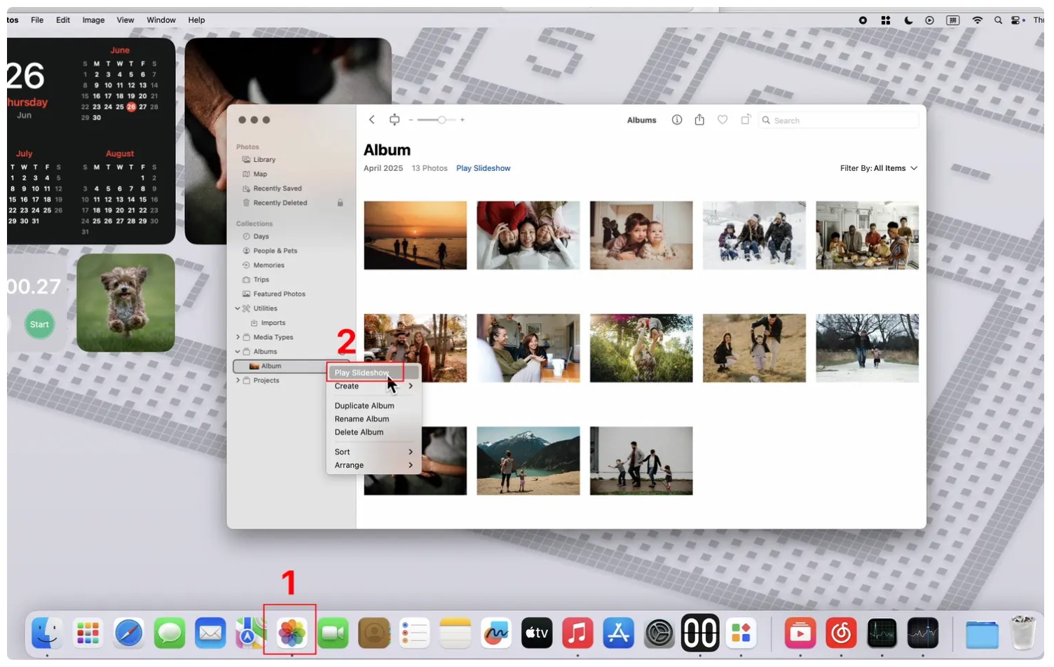 Open the Photos app, pick your favorite album, right-click → Play Slideshow, then drag the window to Wokyis and go full-screen. Your memories, now in mini-theater mode.