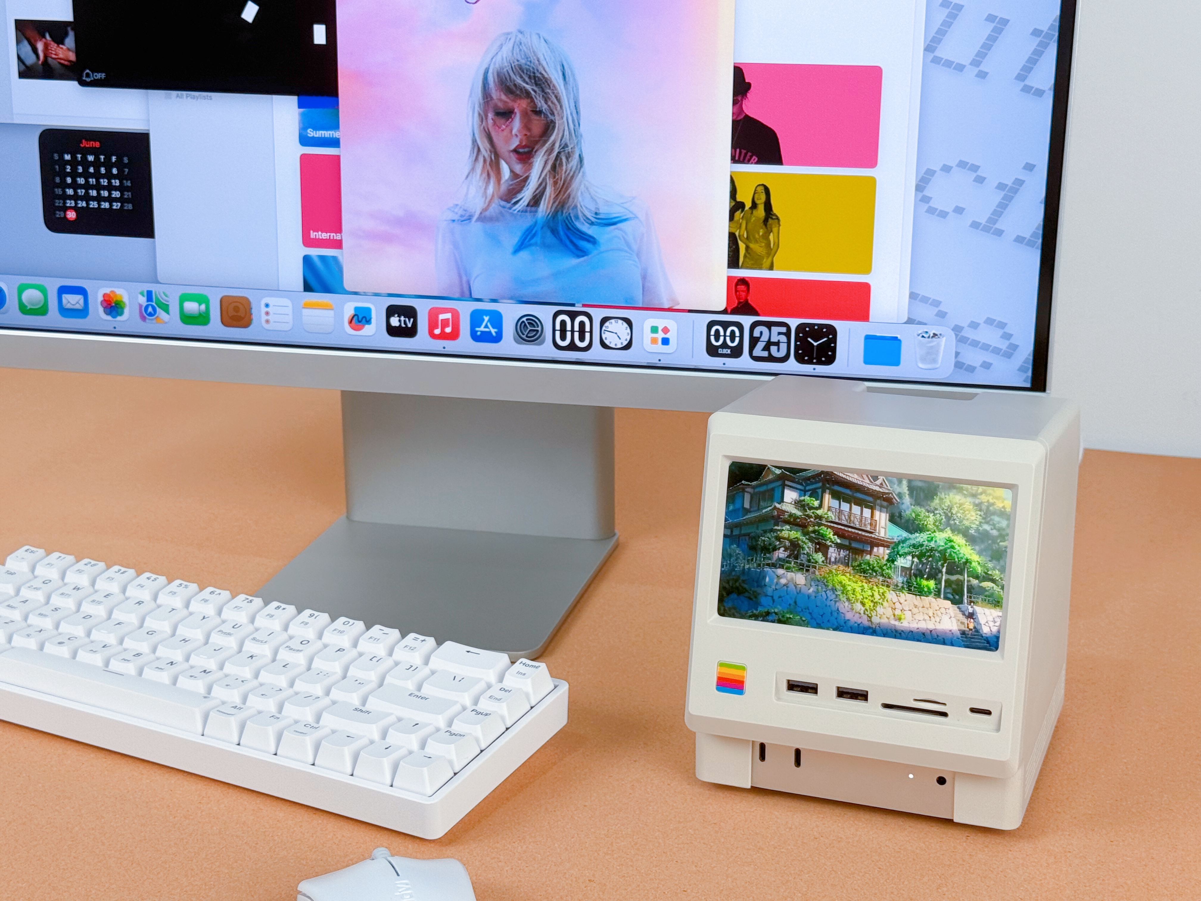 • Wokyis is a multi-function docking station for Mac mini M4/M4 Pro, with build in M.2 SSD slot, it can expand extra 8TB storage(maximum) to your Mac mini M4/M4 Pro. It also features more 10Gbps USB-A and USB-C ports, SD card readers. The Wokyis M5 features a 5''inch HD display, it will bring lots of fun while using the retro style docking station: