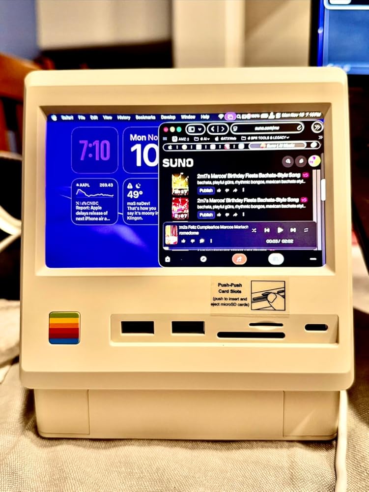 Fun way to wax nostalgic for the classic, original Macintosh design. You can use this as a docking station with a small usable extended display for your latest Mac Mini or even a MacBook Pro (my video demo's it connected to an MBP). Multiple USB-A and USB-C ports, HDMI, and a backpanel for inserting a solid state drive card.