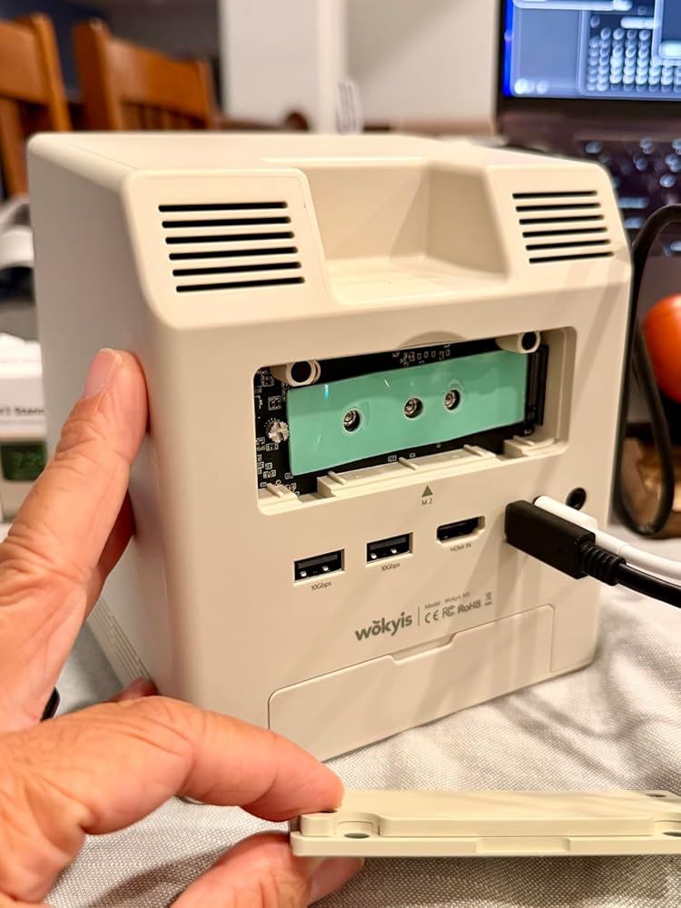 This retro dock is way cooler in person than I expected. It looks like a tiny vintage computer, but it’s actually a fully functional hub loaded with useful ports. The little screen gives it such a nostalgic vibe — it instantly makes your setup look more creative and unique.What I love most: • Tons of ports. SD/micro SD reader, multiple USB-A ports, fast USB-C, and even a headphone jack. Everything is easily accessible from the front, which makes it perfect for quick swaps. • Extra storage. The M.2 NVMe slot in the back is actually really convenient. You can expand your storage without needing a separate enclosure. • Aesthetic upgrade. It literally transforms your desk into a cute, retro-themed workspace. It’s a conversation starter for sure. • Sturdy + well-made. The plastic feels thick and durable, not cheap.Different ways this dock can be used: • Desk organizer hub: Plug your keyboard, mouse, webcam, SD cards, USB drives, headphones — everything routes through one cute mini “computer.” • Retro display piece: Even when you’re not using the ports, it looks adorable as a decorative desktop gadget. • Extra storage station: Pop an NVMe SSD inside and use it as fast external storage for backups, photos, or games. • Charging hub: The front ports make it super easy to plug in and charge small accessories (controllers, earbuds, phones, etc.). • Media center: Hook up speakers/headphones and run your Mac mini as a little retro-styled entertainment device.If you want something that not only works well but also gives your workspace personality, this is honestly perfect.